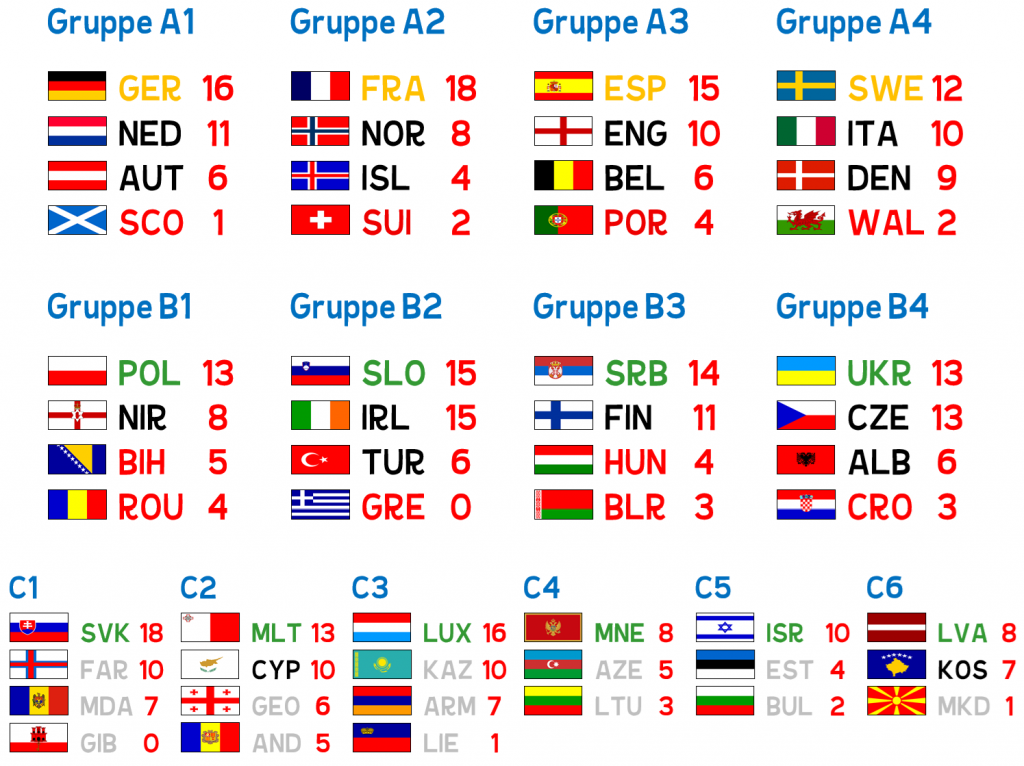 Die Ligen dieser Länder sind weiterhin sehr schwach und das werden sie auch bleiben, doch etwa in Polen kratzt man schon regelmäßig bei den Heimspielen des Frauen-Teams an der 10.000-Zuseher-Marke. Vor zehn Jahren sind es 3.000 an guten Tagen gewesen, ein paar Hundert an weniger guten. Nach dem erfolgreichen Quali-Playoff gegen Österreich waren die Polinnen am Flughafen von Warschau von zahlreichen Fans erwartet worden, vor allem jungen Mädchen. „Wir sehen uns auch als Role Models“, bestätigte Oliwia Woś, die – wie praktisch alle Polinnen im EM-Kader – in besseren Ligen im Westen spielen: Deutschland, Frankreich, Spanien, auch Schweiz.