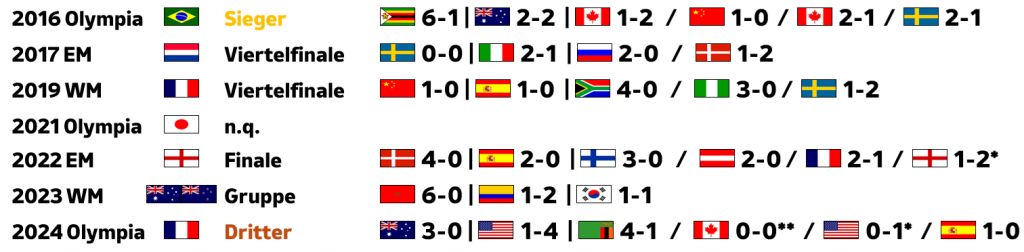 Denn Deutschland geht schwer beschädigt aus dieser Gruppenphase hervor. Spielerisch war es dünn, die Abstimmung beim defensiven Umschalten schon gegen die eindimensionalen Däninnen katastrophal, und man kam im Frühjahr schon teils heftig ins Schwimmen, wenn man von Österreich angepresst wurde. Und nun kommt Frankreich daher! Wer verteidigt gegen die wuchtige Kante Sandy Baltimore? Wie soll Linder gegen die schnellen Cascarino oder Diani dagegenhalten? Und Mis-Matches im Zentrum herstellen, das kann nicht nur Schweden, sondern Frankreich genauso.
