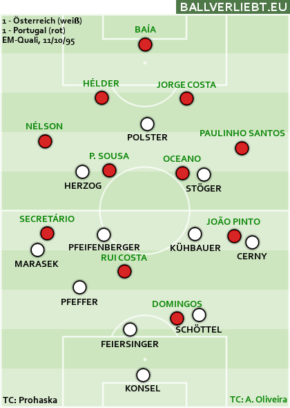 Das starke 1:1 im Herbst 1995 gegen Portugal: Stöger und Herzog als Doppel-Zehn hinter Spitze Polster.