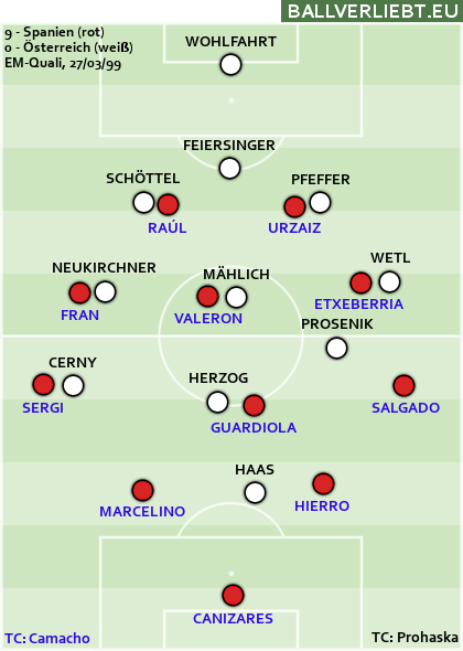 Den Großteil der Qualifikation hatte Österreich in einem 3-4-1-2 gespielt. Es etablierte sich ein nominelles Sturm-Duo Polster/Vastic mit Herzog dahinter, wobei Vastic immer einen sehr großen Wirkungskreis hatte. Allerdings war das legendäre Schweden-Heimspiel das einzige gegen ein Top-Team, in dem das so war. Ansonsten hatte sich Prohaska das nur gegen Estland, Lettland und Weißrussland getraut. Und bei der WM eben erst im letzten Spiel, mit Reinmayr statt Herzog.