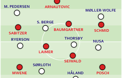 Zehn Minuten nach Wiederanpfiff kam Posch für Hinteregger, mutmaßlich, um den früh gelb-belasteten Hinteregger vor einem Ausschluss zu bewahren. Im Zuge dieses Austausches wurde aber auch das System und die generelle Herangehensweise beim ÖFB-Team geändert. Posch nahm Hintereggers Position ein, aber Ilsanker rückte von der Sechs zurück in die Abwehr. Dadurch entstand ein recht klares 5-4-1.