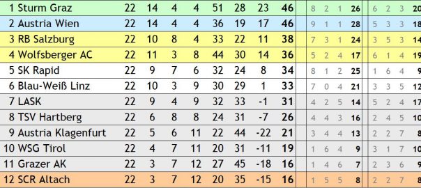Blau-Weiß Linz oben, der LASK unten: Mit diesem Ausgang des Grunddurchgangs war vor dieser Bundesliga-Saison nicht zu rechnen. Davon abgesehen gibt es bei der Verteilung, wer in der Meister- und wer in der Qualifikationsrunde die letzten zehn Saisonspiele absolviert, keine große Überraschungen.